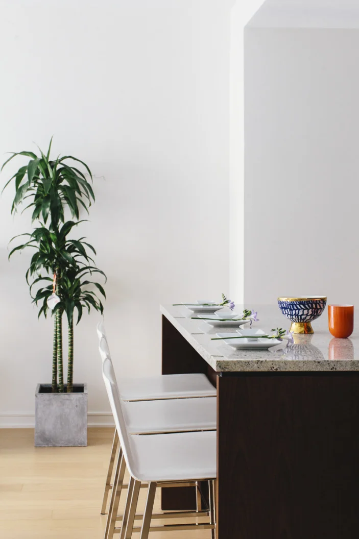 When our client arrived from Miami with nothing but a suitcase, we wanted to make her feel right at home. Opulent mirror and brass finishes were contrasted with more natural wood and mineral accents to evoke a sunny beach dwelling.